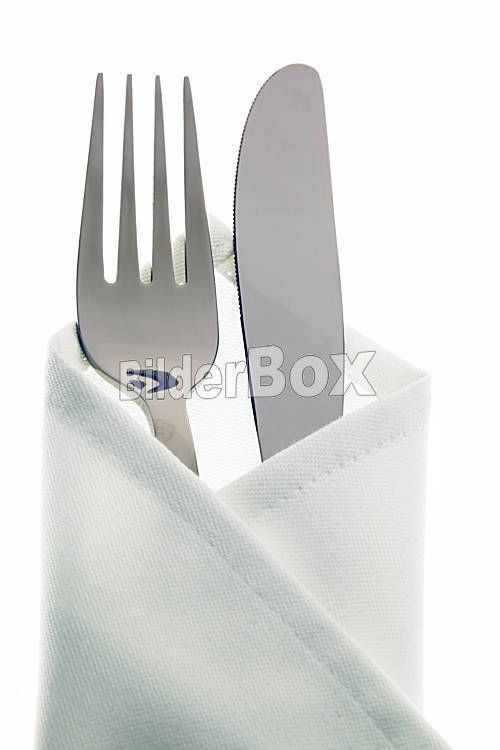 Beschreibung Eine Messer mit Gabel und Teller. Gedeck für ein Abendessen im Restaurant.