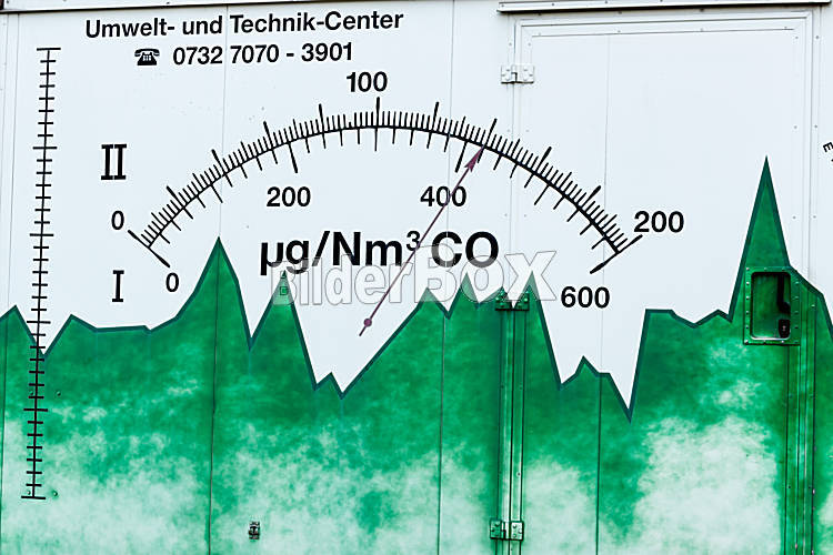 Beschreibung Messgerät zur Luftverschmutzung, Symbol für Ökologie, Umweltschutz, Grenzwerte