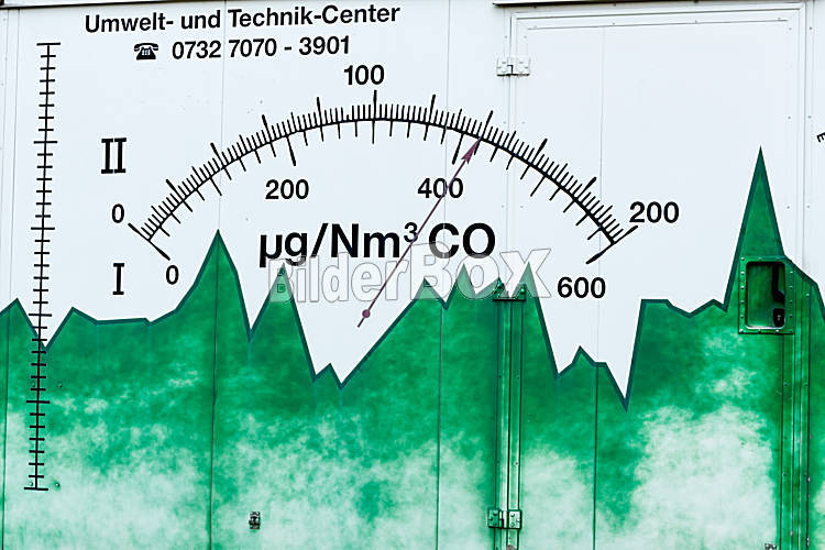 Beschreibung Messgerät zur Luftverschmutzung, Symbol für Ökologie, Umweltschutz, Grenzwerte