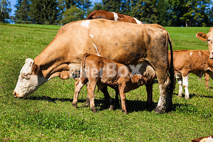 Beschreibung Milchkühe auf der Sommerweide, Symbolfoto für Milchproduktion und ökologische Landwirtschaft