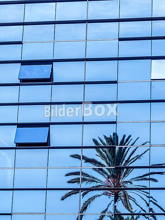 Beschreibung Die Glasfont eines modernen Gebäudes für Büros in Barcelona, Spanien