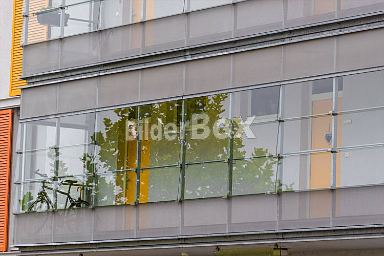 Beschreibung Modernes Mehrparteienhaus, Symbol für Wohnraum, Immobilien und Vermietung