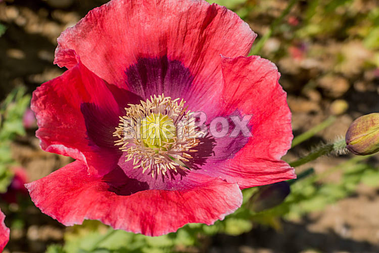 Beschreibung Mohnfeld mit Mohnblumen im Sommer