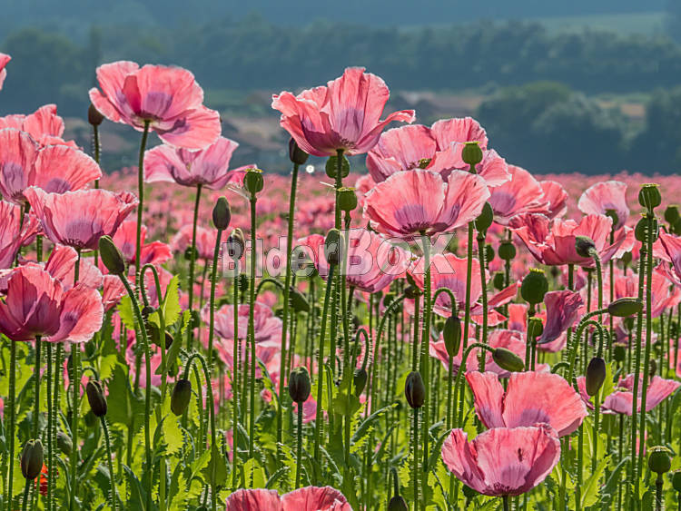 Beschreibung Mohnfeld mit Mohnblumen im Sommer