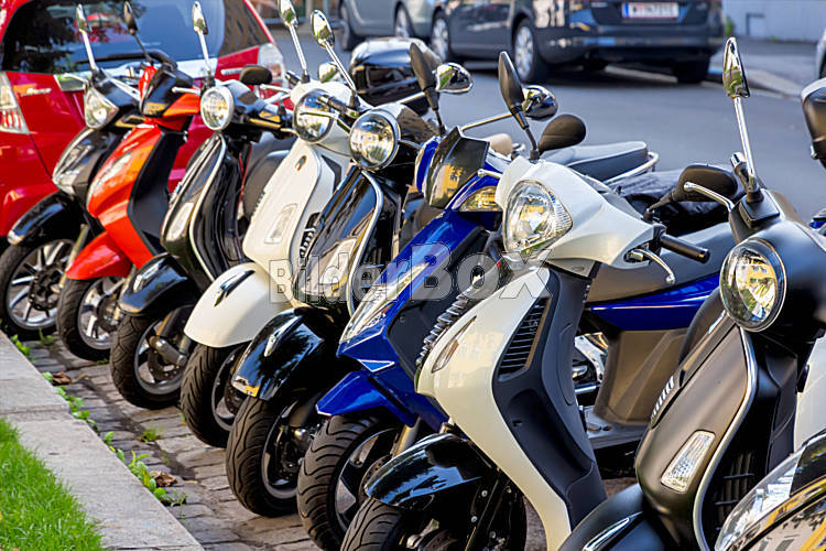 Beschreibung Motorräder am Straßenrand, Symbol für Mobilität,