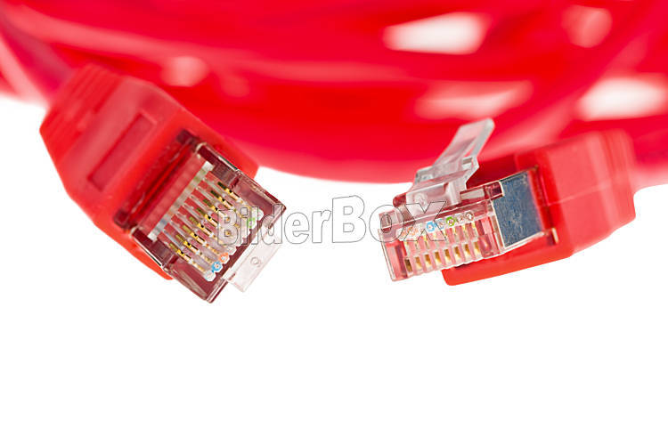 Beschreibung Das rote Kabel eines Netzwerkes von einem Computer.