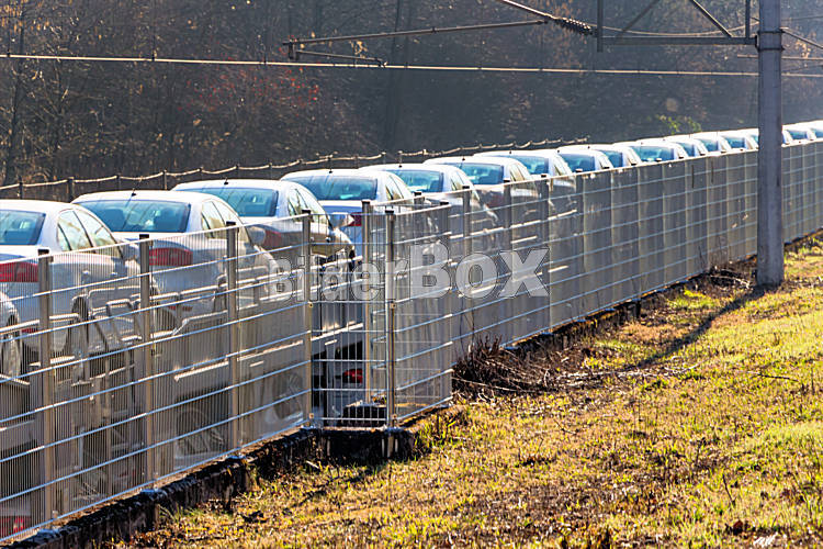 Beschreibung Ein Güterzug bringt neue Autos zu den Autohändlern