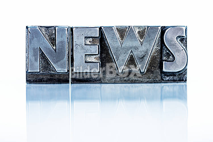 Beschreibung Das Wort News wurde mit Bleibuchstaben geschrieben. Symbolfoto für Newsletter, Zeitungen und Information
