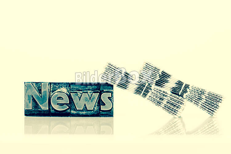 Beschreibung Das Wort News wurde mit Bleibuchstaben geschrieben. Symbolfoto für Newsletter, Zeitungen und Information