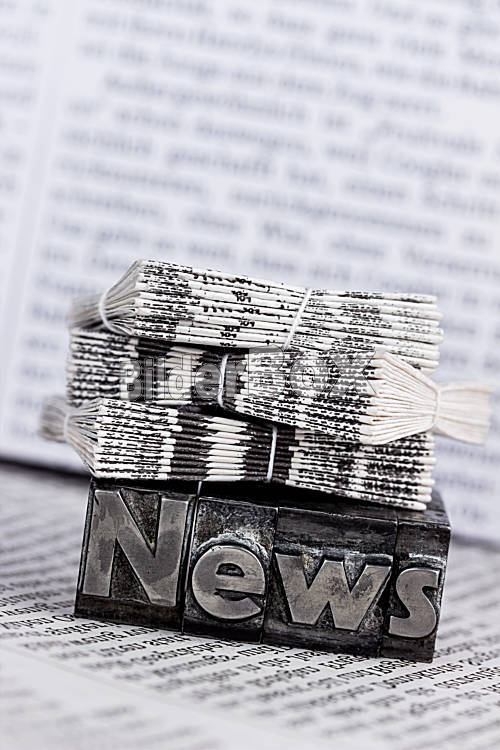 Beschreibung Das Wort News wurde mit Bleibuchstaben geschrieben. Symbolfoto für Newsletter, Zeitungen und Information