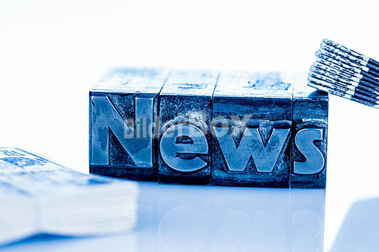 Beschreibung Das Wort News wurde mit Bleibuchstaben geschrieben. Symbolfoto für Newsletter, Zeitungen und Information