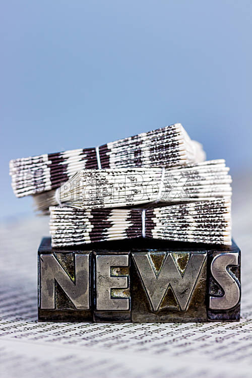 Beschreibung Das Wort News wurde mit Bleibuchstaben geschrieben. Symbolfoto für Newsletter, Zeitungen und Information
