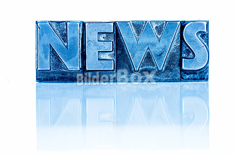 Beschreibung Das Wort News wurde mit Bleibuchstaben geschrieben. Symbolfoto für Newsletter, Zeitungen und Information