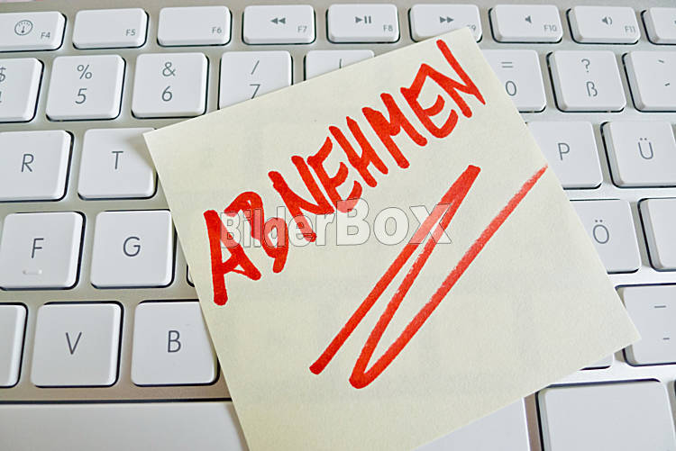 Beschreibung Ein Notizzettel liegt auf der Tastatur eines Computers zur Erinnerung: Abnehmen