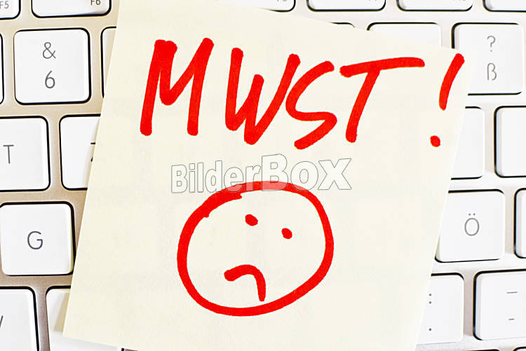 Notiz auf Computer Tastatur: MWSt.