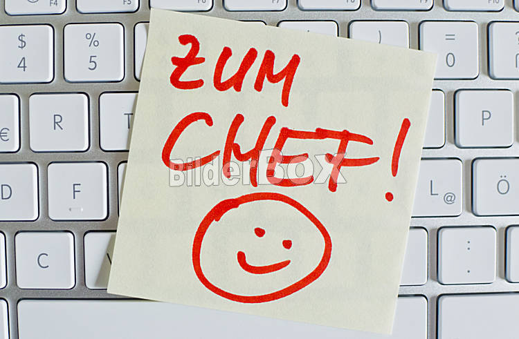 Notiz auf Computer Tastatur: Zum Chef