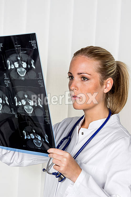 Beschreibung Eine Krankenschwester oder Ärztin in OP Kleidung vor einer Operation. Symbolfoto für Arbeit im Krankenhaus