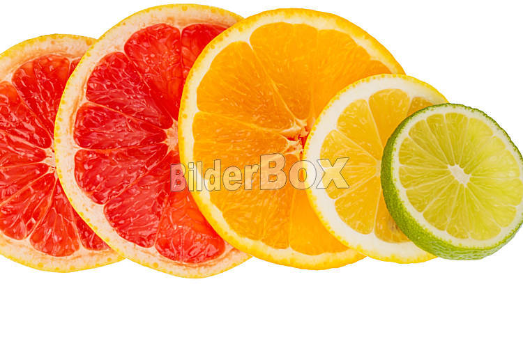 Beschreibung Scheiben einer Orange. Symbolfoto für gesunde Vitamine durch frisches Obst
