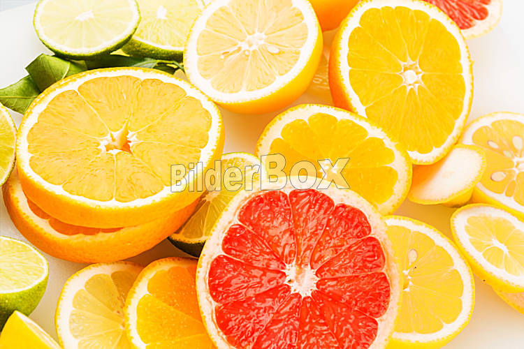 Beschreibung Scheiben einer Orange. Symbolfoto für gesunde Vitamine durch frisches Obst
