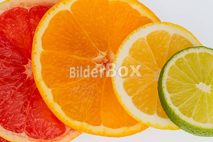 Beschreibung Scheiben einer Orange. Symbolfoto für gesunde Vitamine durch frisches Obst