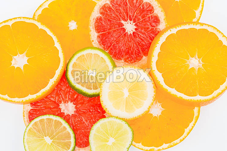 Beschreibung Scheiben einer Orange. Symbolfoto für gesunde Vitamine durch frisches Obst