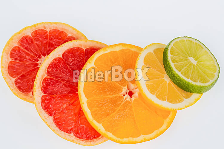 Beschreibung Scheiben einer Orange. Symbolfoto für gesunde Vitamine durch frisches Obst