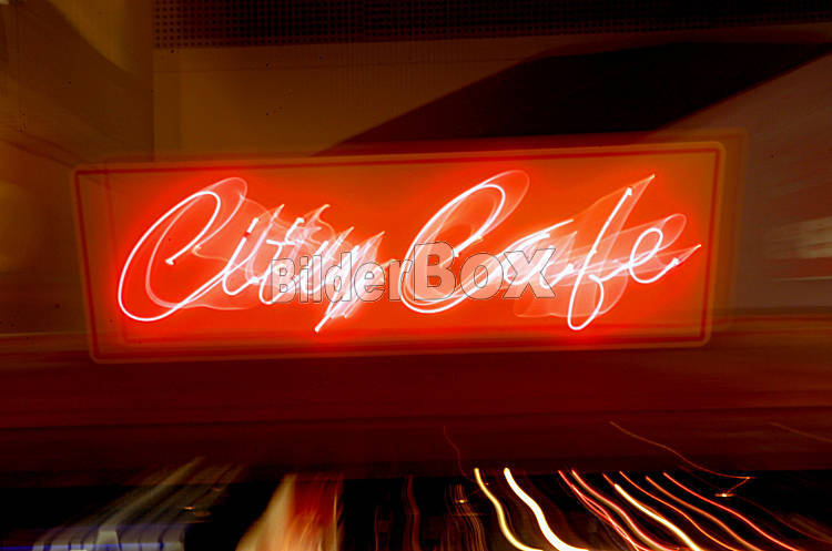 Beschreibung Aufschrift eines Kaffeehauses City, Cafe, Innenstadt, Gastronomie, Lokale, Bar, symbolisch, Leuchtreklame Copyright (2000) by BilderBox; Erwin Wodicka; A- 4062 Thening, www.bilderbox.com