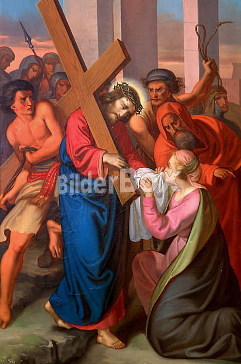 Beschreibung Veronika reicht Jesus das Schweißtuch - Kreuzigung Jesus Religion, Kirchenfeste, Kirchenfeiertage, Kirchliches, Ostern, Brauchtumsfeste, Brauchtumsveranstaltungen, Auferstehungsfesten,...