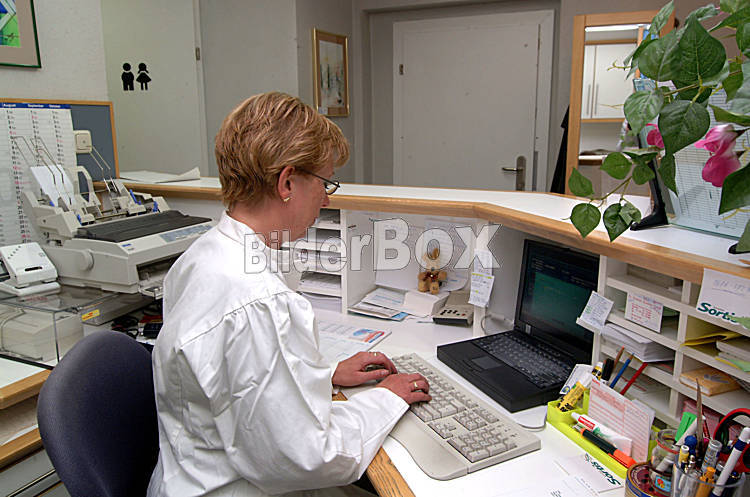 Ordinationshilfe mit einem Computer mit Vorzimmer des Arztes