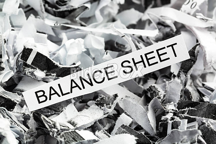 Beschreibung Papierschnitzel mit dem Stichwort Balance Sheet, Symbolfoto für Datenvernichtung, Bilanzen und Rechnungswesen