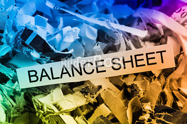 Beschreibung Papierschnitzel mit dem Stichwort Balance Sheet, Symbolfoto für Datenvernichtung, Bilanzen und Rechnungswesen