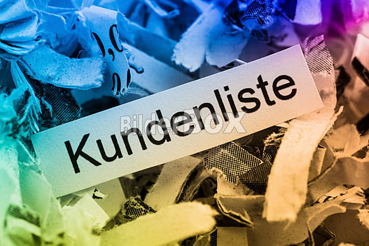 Beschreibung Papierschnitzel mit dem Stichwort Kundenliste, Symbolfoto für Kundendaten und Datenschutz