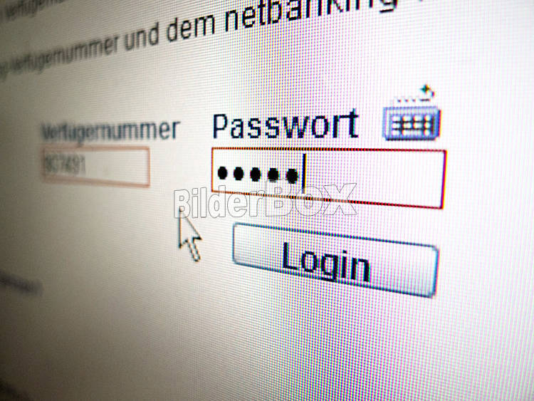 Beschreibung Auf dem Monitor eines Computers wird beim einloggen im online banking das Passwort abgefragt..