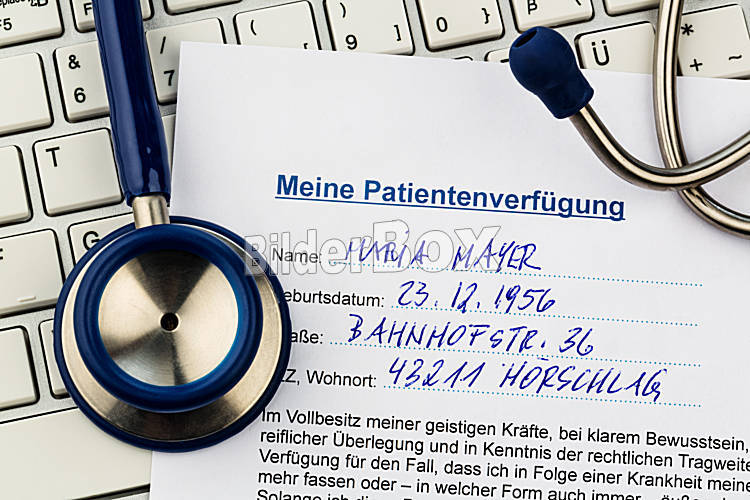 Beschreibung Eine Patientenverfügung in deutscher Sprache. Anweisungen für den Arzt oder das Krankenhaus für den Fall einer unheilbaren Krankheit.