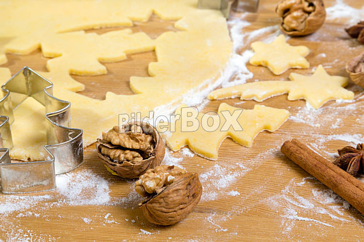 Beschreibung acken von Plätzchen und Keksen für Weihnachten. Vorfreude im Advent.