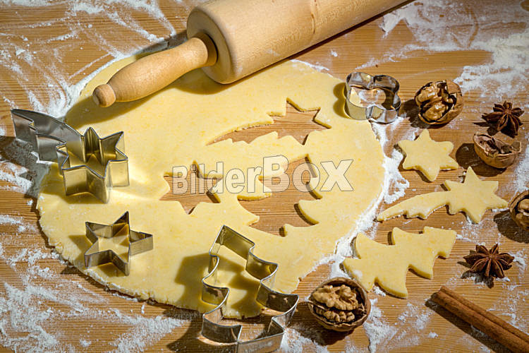 Beschreibung acken von Plätzchen und Keksen für Weihnachten. Vorfreude im Advent.
