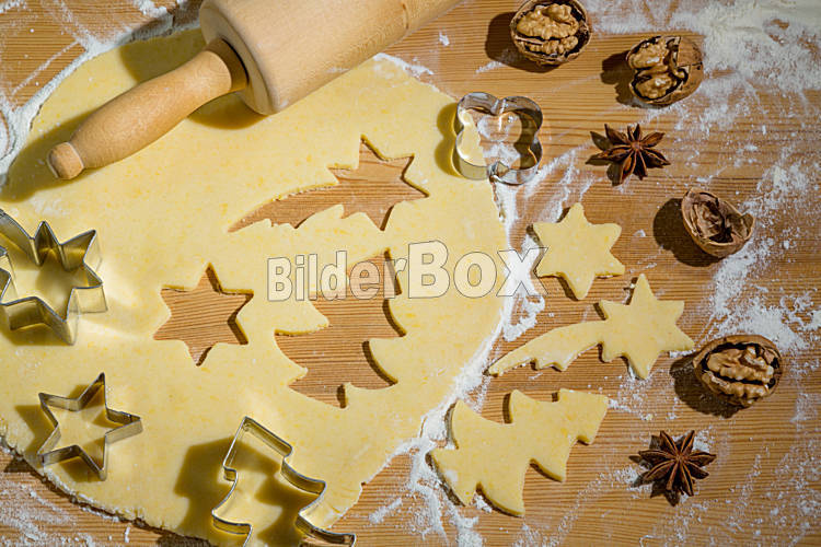 Beschreibung acken von Plätzchen und Keksen für Weihnachten. Vorfreude im Advent.