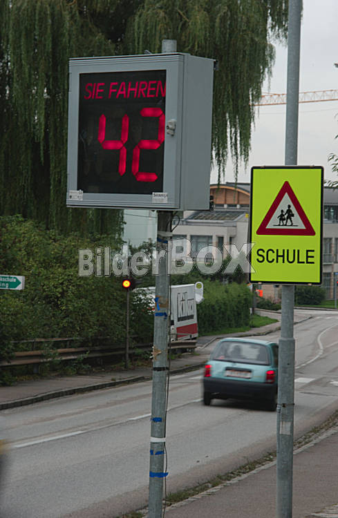 Beschreibung Radarmessungen im Stadtgebiet vor einer Schule Copyright (2001) by BilderBox.com; Erwin Wodicka, A-4062 Thening. www.bilderbox.com. + und im als mit beim & and (1001) Autos, Automobils,...