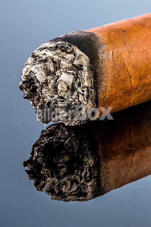 Beschreibung Rauchende Zigarre. Ein Symbolfoto für Sucht und Genuss