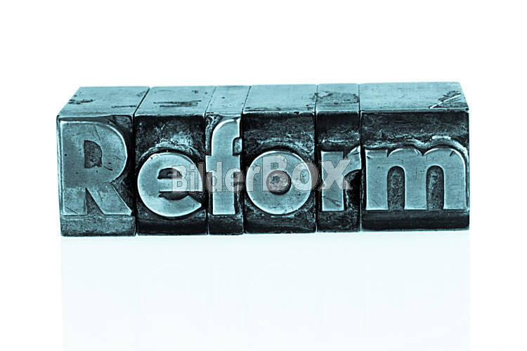 Beschreibung Das Wort " Reform " in Bleibuchstaben geschrieben. Symbolfoto für schnellen Schriftverkehr