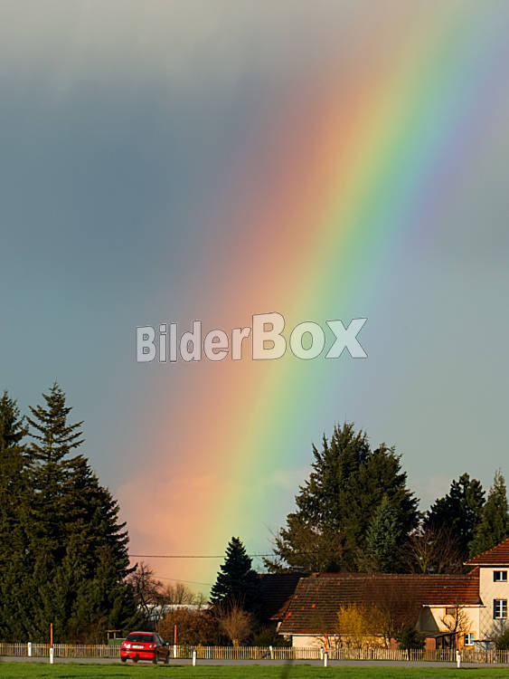 Beschreibung Nach schlechtem Wetter und Regen erfreut ein Regenbogen.