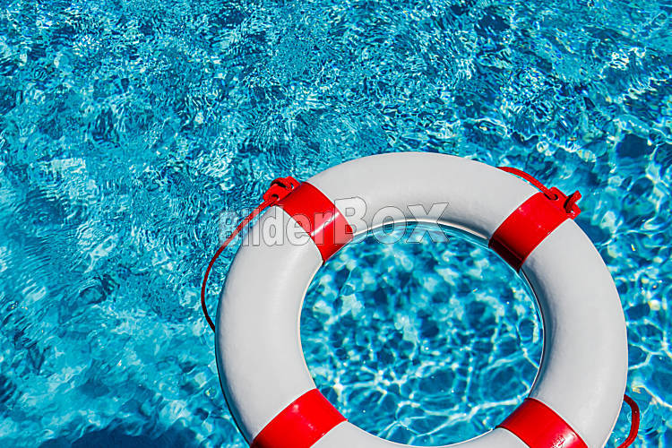 Beschreibung Ein Rettungsreifen schwimmt in einem Pool. Symbolfoto für Rettung und Krisenbewältigung bei Finanzkrise und Bankenkrise.