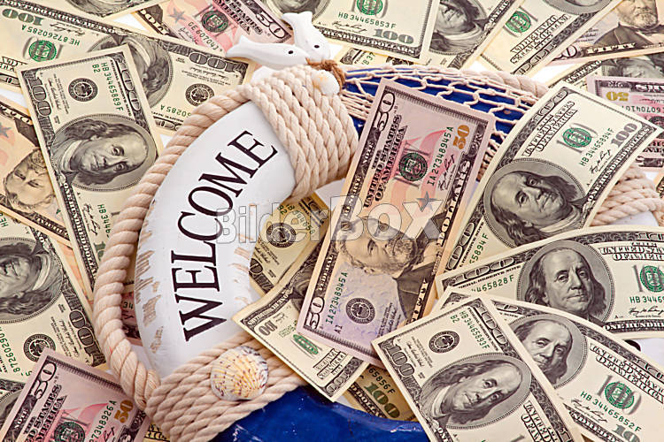 Rettungsring und Dollar. Rettung für Griechenland.