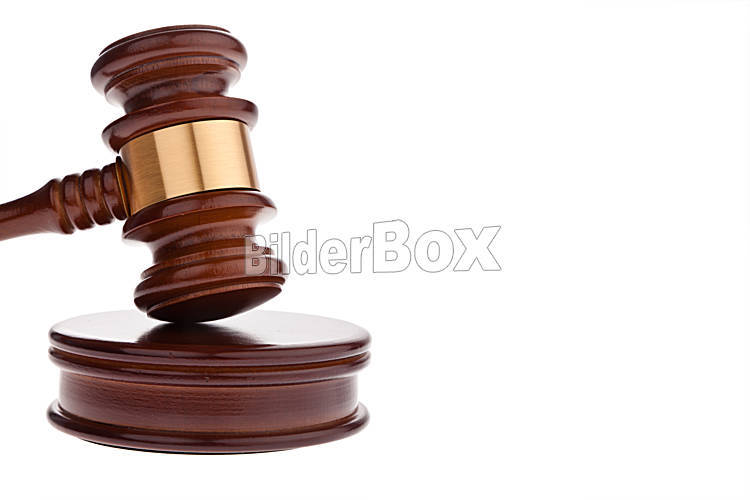 Beschreibung Ein Richterhammer oder Auktionshammer. Isoliert vor weißem Hintergrund