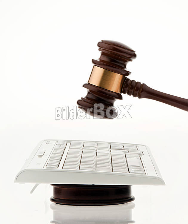 Beschreibung Richterhammer und Tastatur. Rechtssicherheit im Internet. Webauktionen.