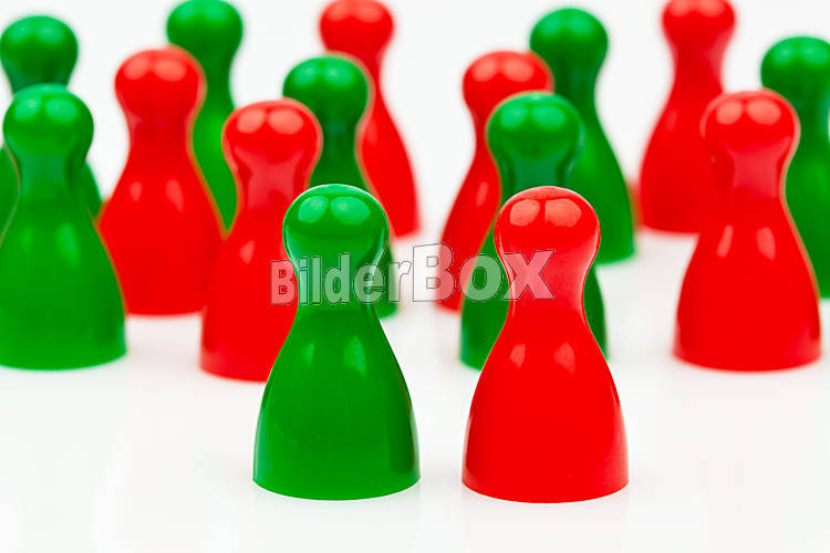 Beschreibung Rote und grüne Spielfiguren. Koalitionsregierung zwischen Rot und Grün.