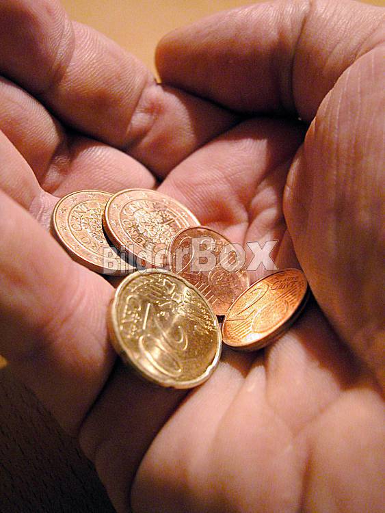 Beschreibung Euromuenzen in einer Hand [ (c) www.BilderBox.com, Erwin Wodicka, A-4063 Breitbrunn, Tel. +43 676 5103 678. Verwendung nur gegen HONORAR, BELEG, URHEBERVERMERK und den AGBŽs auf www.bilderbox.com ]...