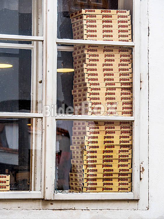 Beschreibung In einer Pizzeria warten Schachteln für Pizza auf ihre Auslieferung.