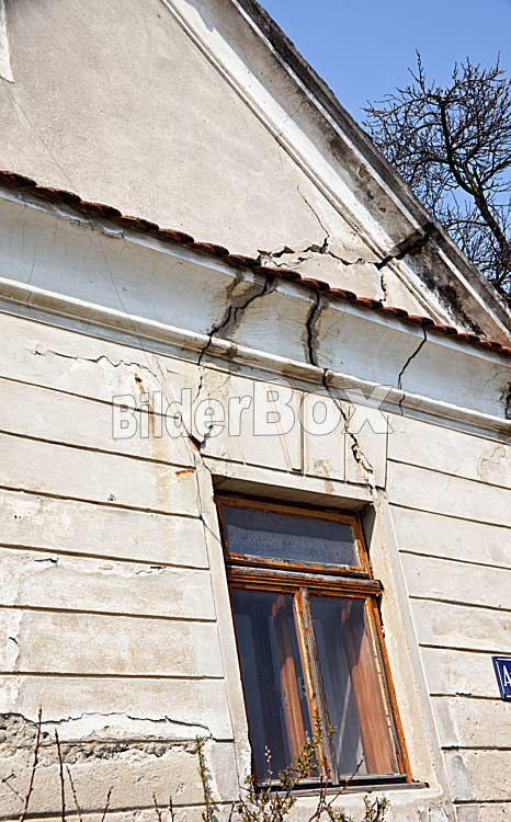 Beschreibung Schwerwiegende Bau Schäden am Giebel eines alten Hauses