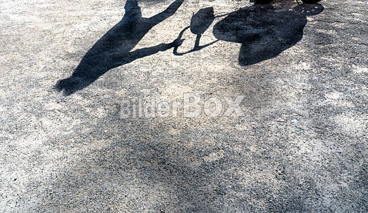 Beschreibung Schatten eirn Frau mit einem Kinderwagen.